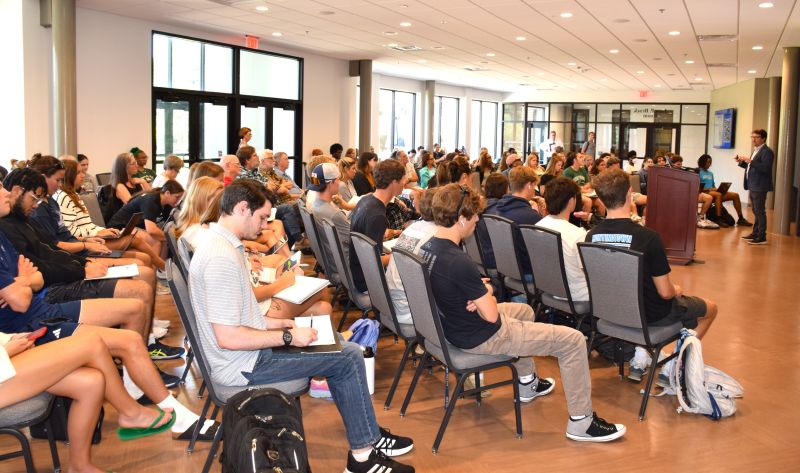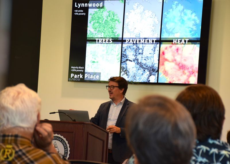 “Why is it that a ZIP code can predict life expectancy?” asked Dr. Johnny Finn, associate professor of geography at Christopher Newport University, as he addressed a full audience during the annual Cookson Lecture at Virginia Wesleyan University on September 25. Hosted by the Robert Nusbaum Center in Brock Commons, the noon talk challenged attendees to consider how systemic inequities take shape in the very landscapes we inhabit.