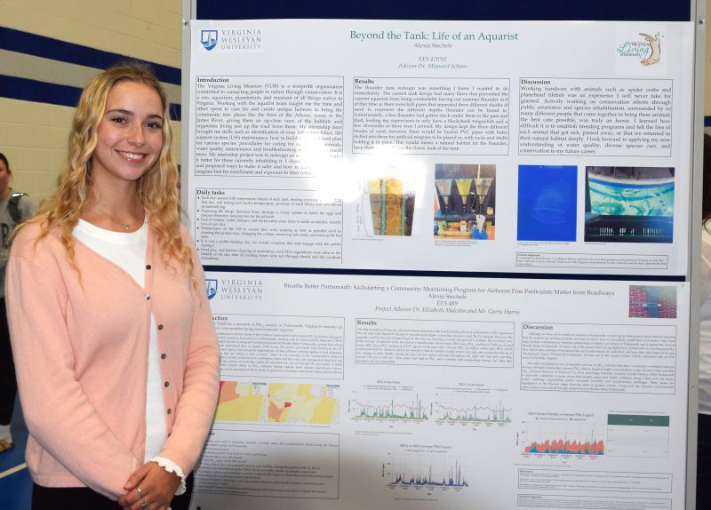 Senior Alexia Stechele ‘24 presented her poster, “Beyond the Tank: Life of an Aquarist,” during VWU’s Fall Academic Symposium on December 4. The poster depicted details about her recent internship experience at the Virginia Living Museum in Newport News, Virginia. The Earth and Environmental Sciences major is set to graduate with a Bachelor of Science degree on December 20.