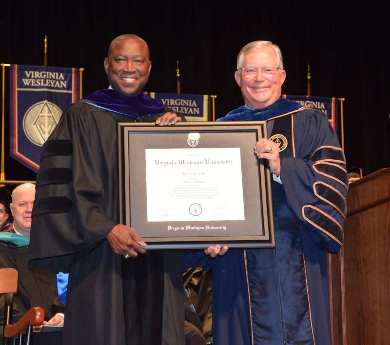 Following his address, President Miller presented Speaker Scott with an honorary Doctor of Laws (honoris causa).